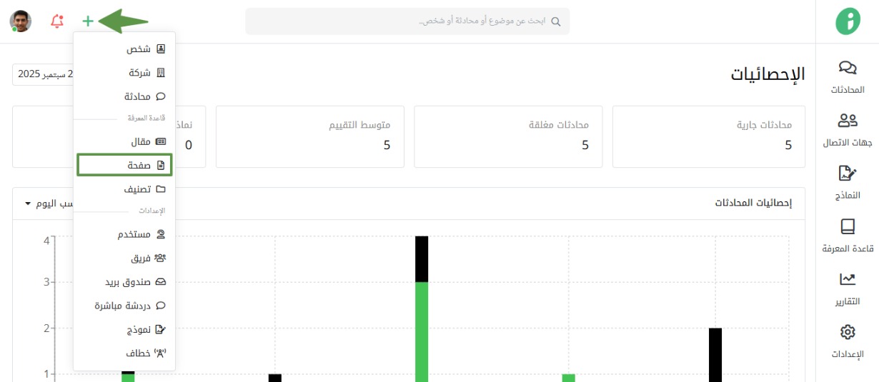 لإضافة صفحة، يمكنك الضغط على أيقونة الإضافة، واختيار صفحة.