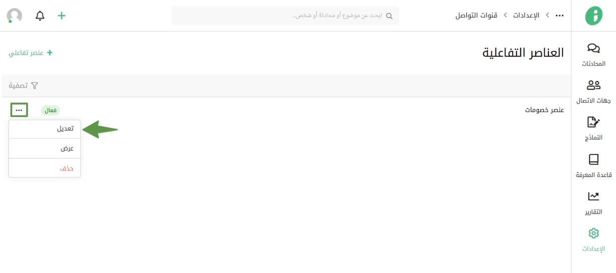 اضغط على اسم العنصر التفاعلي، أو اختر تعديل من القائمة الموضحة.
