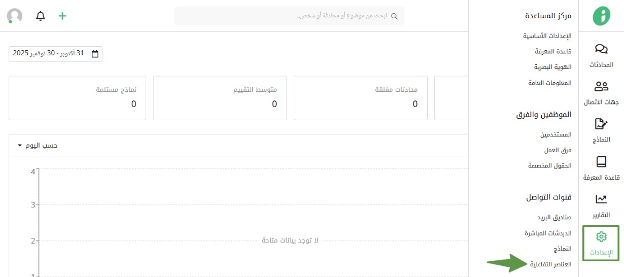 يتيح مركز مساعدة زيتون إمكانية تفعيل أو إلغاء تفعيل العناصر التفاعلية من خلال خطوات التالية: