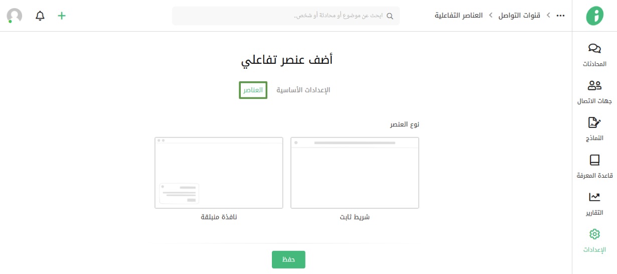 حدد نوع العنصر التفاعلي، سواء شريط ثابت أو نافذة منبثقة.