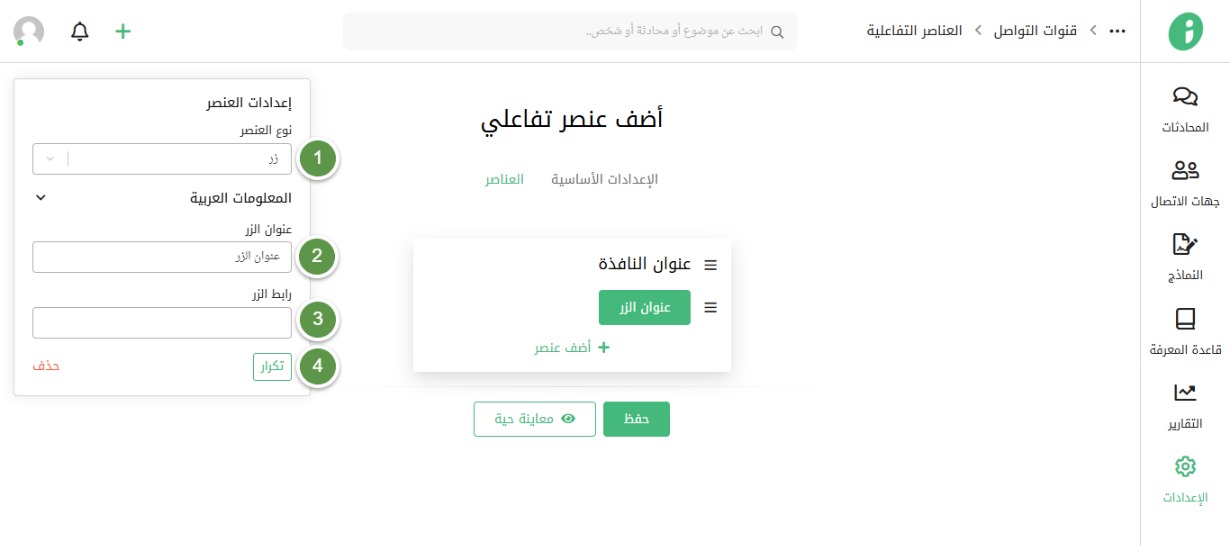 4. حذف الزر أو تكراره في العنصر التفاعلي