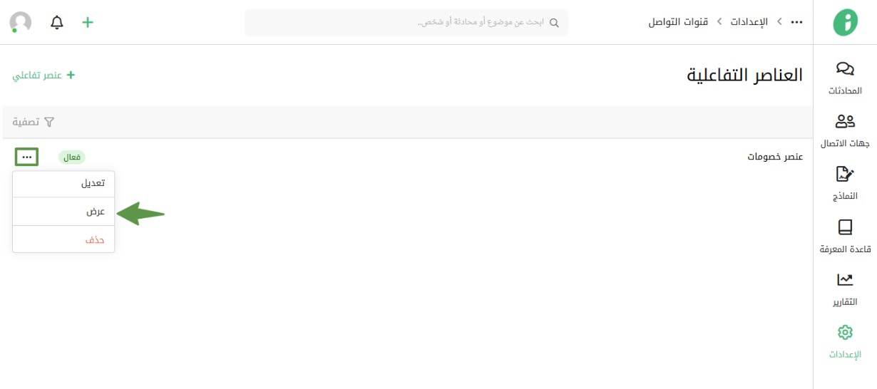 اضغط على اسم العنصر التفاعلي، أو اختر تعديل من القائمة الموضحة.