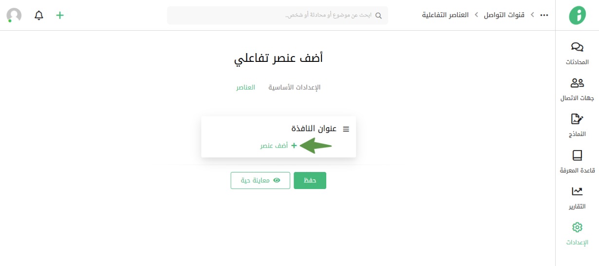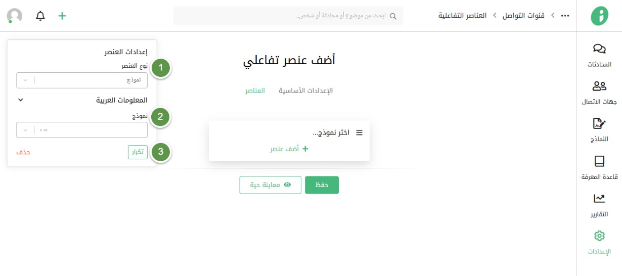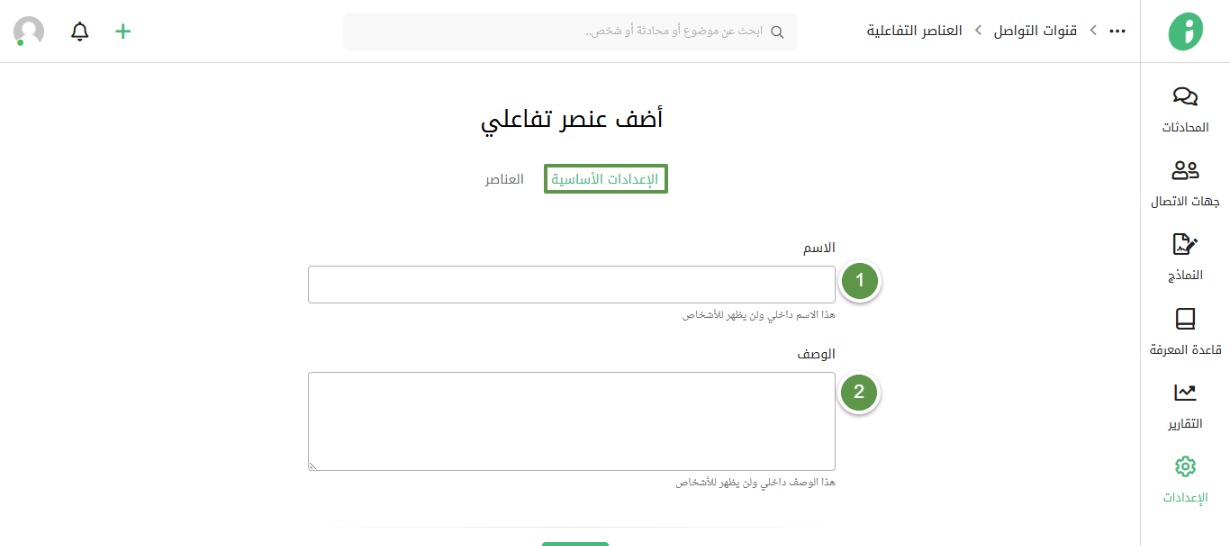 لإضافة عنصر تفاعلي جديد، اتبع الخطوات التالية: