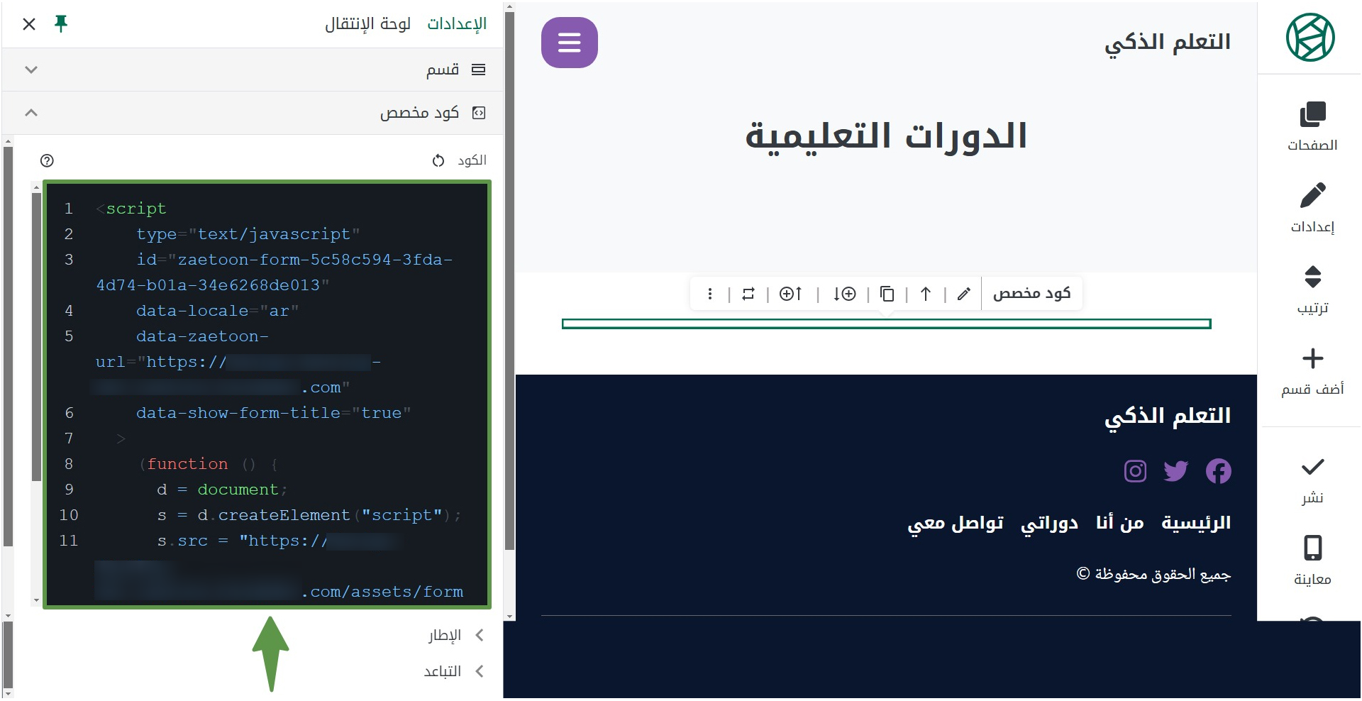 بعد إضافة قسم كود مخصص، سيظهر بهذا الشكل اضغط على تعديل لتتمكن من إضافة الكود الذي نسخته من زيتون.